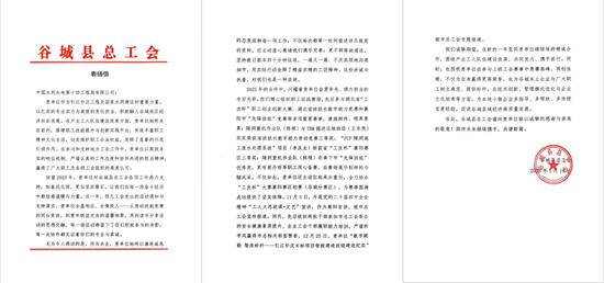 YY易游8标项目部获谷城县总工会表扬信 | ||||