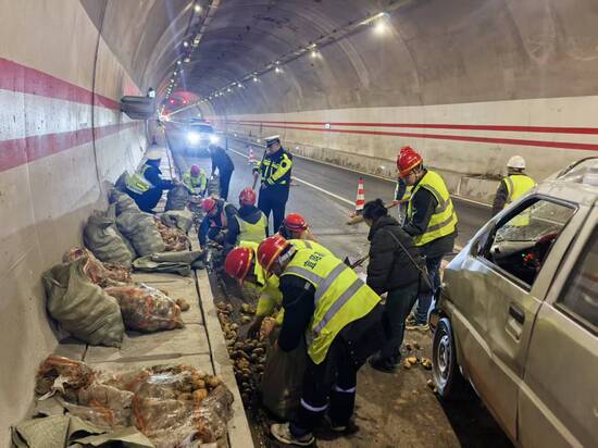 1月10日,一辆装运农作物的货车在yy易游体育高速白沙坡隧道发生侧翻,yy易游体育运管中心快速启动应急响应,成功化解险情、有效减少司机损失。 当日14:18,监控中心视频巡查发现白沙坡隧道下行K116+135处发生交通事故,占用超车道,监控中心立即按照应急处置流程开启隧道广播、更改情报板,并通知彝良隧管站、彝良交警赶赴现场开展救援处置。 隧管站当班人员抵达后,迅速布设安全防护设施、划定警戒区防止二次事故。经初步核实,事故系驾驶员操作不当急打方向盘所致,现场无人员受伤。 为切实保障驾驶员权益、最大限度降低其经济损失,现场工作人员当即组织人力对散落货物开展分拣卸货作业。全体人员分工协作、高效配合,快速将散落土豆重新装袋归集,随后协助完成侧翻车辆扶正工作。经过近一个半小时的全力处置,车上货物全部完成转运重装。 事故车辆由拖车安全拖离现场后,yy易游体育运管中心工作人员对事故路段进行全面清理,在确认路面安全后,撤除现场安全防护,道路恢复正常通行。 | |||||