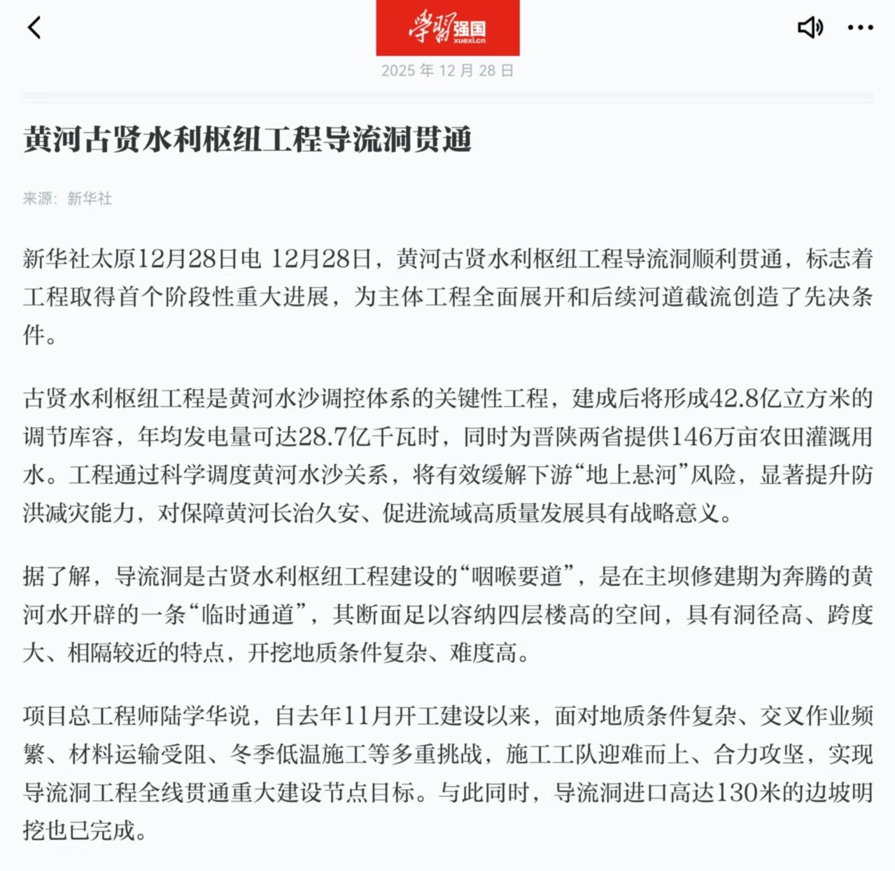 12月28日,YY易游体育直播古贤水利枢纽工程导流洞实现全线贯通,这一标志着工程取得首个阶段性重大胜利的关键节点,人民日报客户端、新华网、中国水利报、学习强国、YY易游体育直播网、临汾日报等多家主流媒体集中报道。作为该工程导流洞的重要承建单位,水电十四局与参建各方合力攻坚,在复杂地质与恶劣施工条件下圆满完成建设任务,为YY易游体育直播流域生态保护和高质量发展注入强劲动力。 YY易游体育直播古贤水利枢纽工程是YY易游体育直播流域生态保护和高质量发展重大国家战略确立的标志性工程,更是新时代保障YY易游体育直播长久安澜的关键性水利设施。其导流洞作为工程关键线路上的控制性工程,承担着施工期间导流泄洪的核心重任,是主坝修建期为YY易游体育直播水流开辟的“临时通道”,直接关系到后续河道导截流和主体工程的全面推进。 媒体普遍强调,古贤水利枢纽工程是YY易游体育直播流域生态保护和高质量发展国家战略的重大项目,对于健全YY易游体育直播水沙调控体系、保障YY易游体育直播长治久安具有战略意义。工程建成后,将在防洪减淤、水资源调蓄、供水灌溉、发电等方面发挥重要作用,有效缓解下游“地上悬河”风险,并为晋陕两省农业灌溉、区域发展提供坚实水安全保障。水电十四局在导流洞建设中展现的专业技术实力与攻坚克难精神,成为媒体报道的亮点。 后续,水电十四局古贤项目部将继续秉持“科技引领、精细管理、统筹资源”的建设理念,高标准推进转序验收和首仓混凝土浇筑工作,紧盯大河截流目标,持续优化施工组织与资源配置,保持建设攻坚加速度,力争导流洞按期过流,为主体工程如期施工筑牢基础,全力打造YY易游体育直播流域水利枢纽新标杆,为守护母亲河安澜、推动流域高质量发展贡献十四局力量。 报道链接: 人民日报客户端:https://www.peopleapp.com/column/30051084395-500007278888 新华网:https://www.news.cn/20251228/a247202c1023465c872b224b93b44d6b/c.html 中国水利报: https://mp.weixin.qq.com/s/DTS1Pc-EG2i8RLmLGygZTA YY易游体育直播网: https://mp.weixin.qq.com/s/y8RwC_zS6lvdvPl-5wix1w 临汾日报: https://mp.weixin.qq.com/s/thj5qW8XSjsLRXh8yGEixw 学习强国:https://article.xuexi.cn/articles/index.html?art_id=467025879897018666&item_id=467025879897018666&study_style_id=feeds_default&t=1766970013845&showmenu=false&ref_read_id=1edb0169-f65f-4c83-a7b9-c0c787462525_1766987067952&pid=&ptype=-1&source=share&share_to=wx_feed | ||||