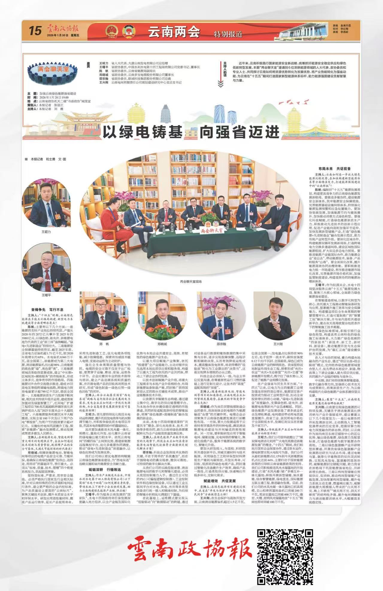 1月28日,云南省政协委员,公司党委书记、董事长YY易游体育直播受邀做客云南两会聊天室,与其他5位深耕能源领域的人大代表、政协委员和专业人士,围绕“加强云南绿色能源强省建设”展开交流,共同探讨云南如何将资源优势转化为发展动能,为“十五五”期间打造国家新型能源体系标杆贡献智慧。 针对如何带动本地中小企业协同发展、助力构建绿色能源产业链的问题,YY易游体育直播表示,作为服务云南的“国家队”,水电十四局始终将自身发展融入地方经济,依托全产业链及国际化优势,与本地企业共建安全、高效、有韧性的绿色能源生态。一是以重大项目赋能产业集聚,发挥“投建营”全产业链能力,优先选用本地优质供应商,形成以重大工程为依托的产业共同体。二是以技术创新赋能产业升级,结合工程需求布局新能源装备制造,推广国家级关键技术成果,推动产业链整体提升。三是以资源共享赋能生态构建,通过数字化供应链管理平台,为本地伙伴提供稳定透明的市场渠道,合作研发高原适应性智能装备,培育“绿色能源+高端制造”新业态。 就云南如何放大绿色能源优势、打造能源强国“云南样板”,YY易游体育直播指出,作为驻滇央企,水电十四局全力服务云南“十五五”能源发展大局,聚焦三大领域助力绿色能源强省建设。在智能建造领域,以数字化转型为核心,依托重大工程研发应用智能装备,构建全生命周期智慧管理平台,打造可推广的“智慧工地”方案,联合省内高校攻关高海拔复杂地质施工技术。在绿色标准领域,引领行业绿色转型,构建云南特色绿色施工标准体系,推广绿色低碳“四新技术”,推动能源开发与生态保护协同。在人才与协同领域,通过“项目实战+校企联培”定向培养复合型人才,优先带动本地设计、制造、物流等企业融入供应链,提升产业链韧性与竞争力。 作为产业链龙头企业和驻滇央企,公司积极践行国家能源安全新战略,坚持以绿色筑基高质量发展。未来,公司将继续秉持“共建共享”理念,深化央地资本、技术、市场等多维协同,聚焦智能建造与数字化融合,加强核心技术攻关与转化,培育新质生产力,助力云南将绿色资源优势转化为全产业链发展优势,为构建现代化绿色能源产业体系提供坚实支撑。 | |||