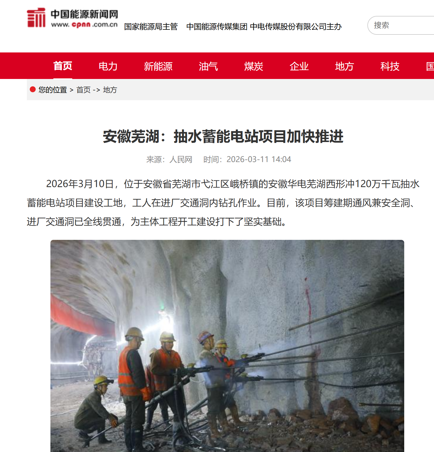 人民网、中国能源新闻网:YY易游官网芜湖抽水蓄能电站项目加快推进 | |||