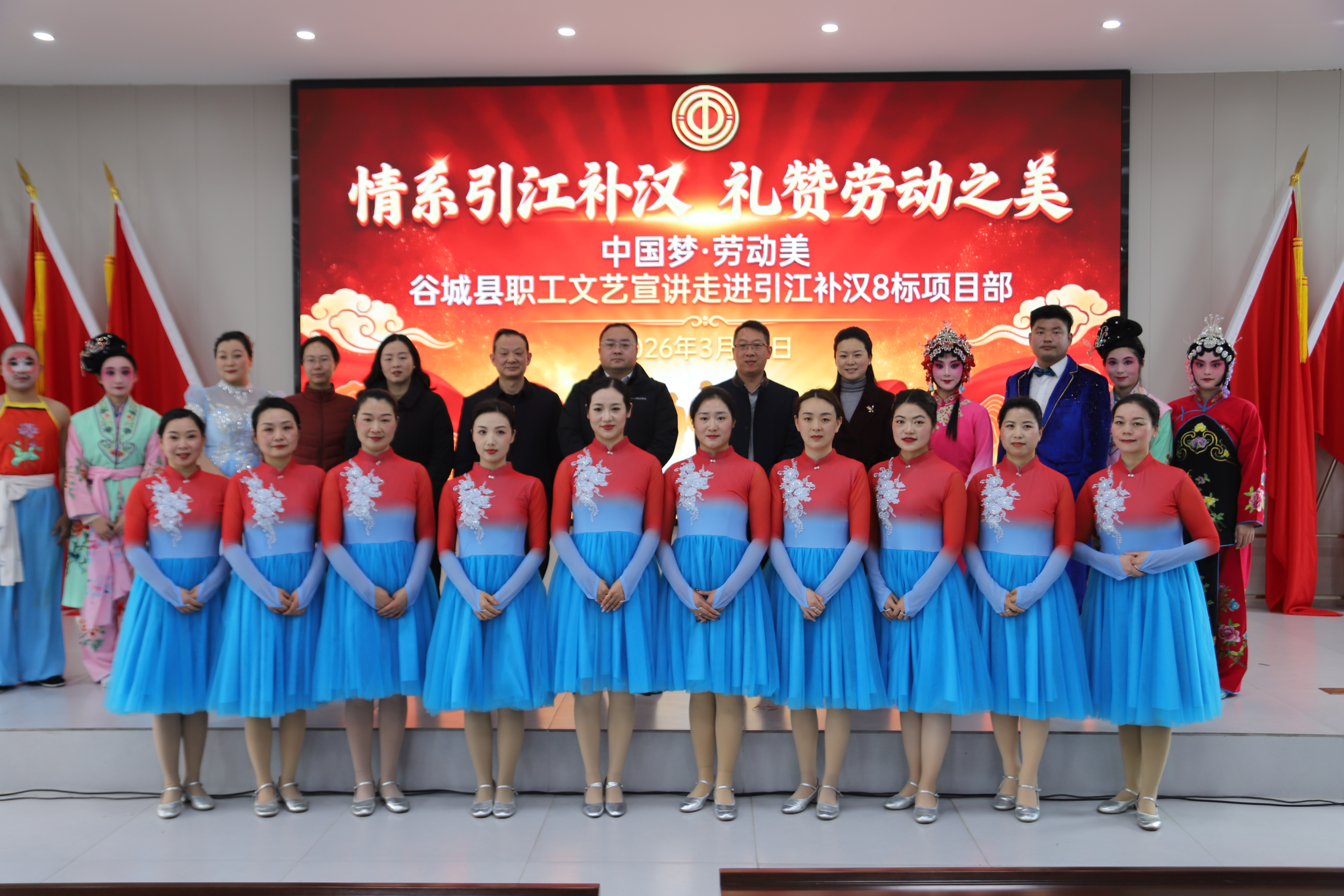 yy体育日报客户端讯(通讯员张伽禾、敖博)春染汉江畔,情暖劳动者。为丰富一线建设者的精神文化生活,致敬奋斗在国家重大水利工程一线的劳动者,3月18日,谷城县总工会联合县剧团走进引江补汉工程8标项目部,开展了一场以“情系引江补汉,礼赞劳动之美”为主题的慰问交流活动。 活动首先由襄阳市劳动模范李小丹同志作宣讲,其扎根一线、敬业奉献的感人事迹与奋斗感悟,生动诠释了新时代的劳模精神、劳动精神和工匠精神。 随后,一场极具地方特色与时代气息的文艺演出精彩上演。谷城县剧团的演员们倾情演绎,为工程建设一线的工友们献上了舞蹈《咱们工人有力量》、yy体育越调传统剧目选段《顶灯》《梳妆》、歌伴舞《领航新时代》等精心编排的节目。演出高潮迭起,节目内容丰富,形式多样,既有对劳动者崇高的礼赞,也有对地方优秀传统文化的精彩呈现,为平日里忙碌在施工一线的建设者们送上了一道丰盛的文化盛宴。 当天,谷城县总工会还与引江补汉yy体育建设、设计、监理、参建单位进行座谈交流。各方围绕如何更好地服务一线职工、维护劳动者合法权益、推动产业工人队伍建设改革以及加强企地共建等方面展开了热烈而务实的讨论,共同探讨在新形势下做好工会工作的新思路、新方法,为引江补汉这一国家重大战略yy体育的顺利推进提供更加坚实的保障和支持。 此次慰问交流活动,极大地激发了全体参建人员的干劲与热情。项目部全体职工将把关怀转化为动力,把鼓舞转化为行动,大力弘扬劳模精神、劳动精神、工匠精神,锚定yy体育建设目标,优质高效推进各项施工任务,在构筑国家水脉的伟大事业中展现担当、贡献力量。 | ||||