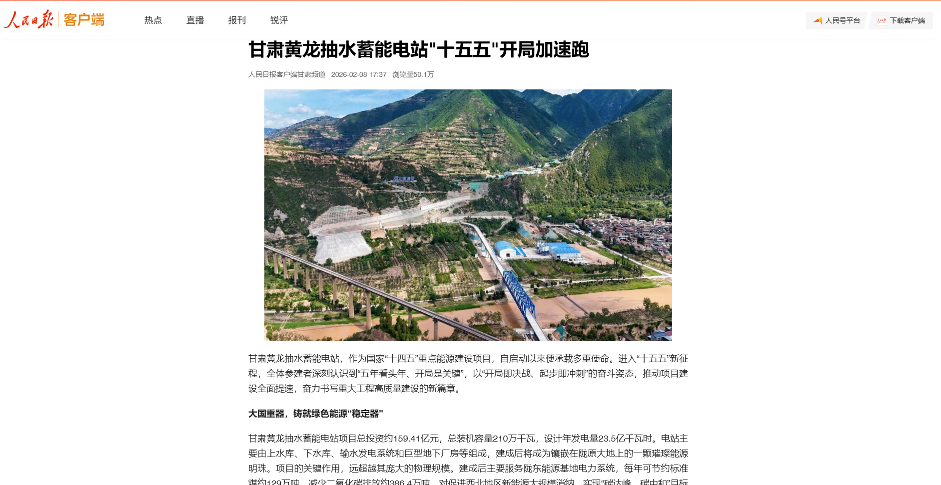 人民日报:易游官方黄龙抽水蓄能电站"十五五"开局加速跑 | |||