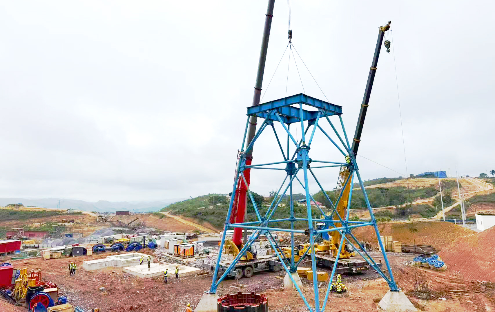 近日,米乐yy易游体育入口项目南进风井系统井架顺利吊装。 南进风井井架是TETELO铜矿项目地下通风系统的关键组成部分,进风井被称作矿山的“呼吸系统”,负责提供新鲜空气,排除有毒有害气体和粉尘,为矿工创造安全的工作环境。 该井架高度21.6米、重量达29.5吨,此次吊装团队采用双机抬吊技术,由一台50吨吊车和一台100吨吊车协同作业,整个过程安全可控。作业面临设备体积大、定位要求高等多重挑战。吊装过程中团队严格遵循吊装方案,统一指挥信号,确保同步作业。团队先通过试吊,验证了吊具的可靠性,随后缓慢提升井架,并利用缆风绳调整其方位,最终实现精准就位。