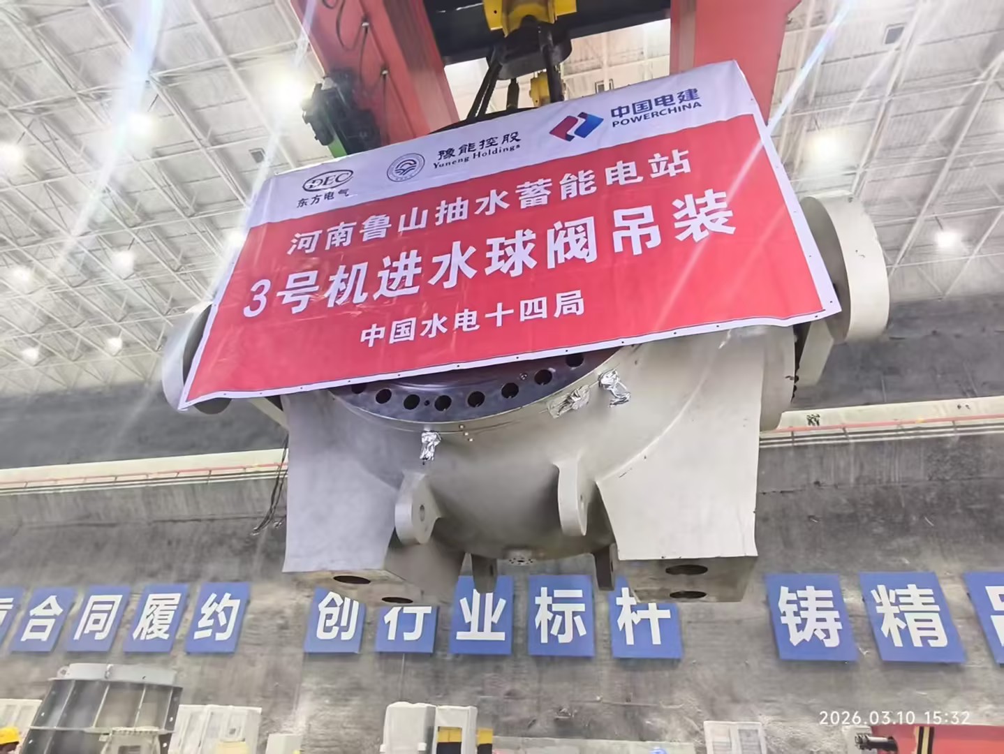 【安装尖锋】YY易游注册抽蓄电站3号机进水球阀吊装完成 | ||||